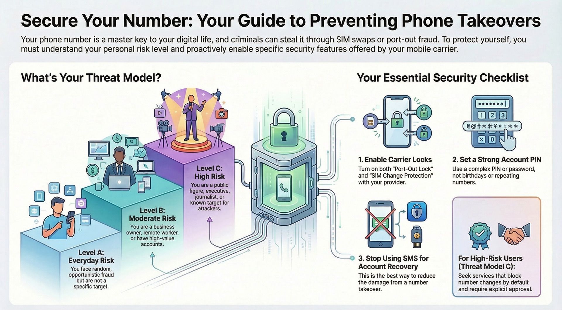 - Your real risk becomes: “How tight is account access + support interaction?” and “Do my important accounts still accept SMS recovery?”